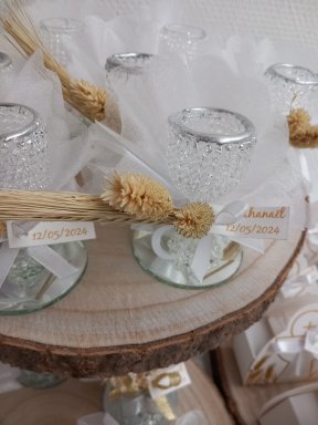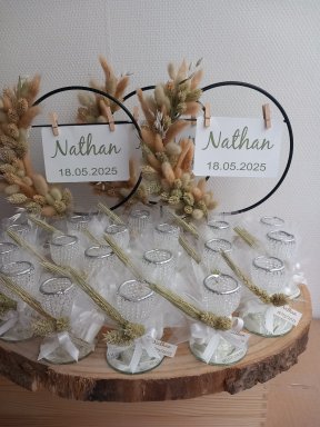 Le sujet est tout à fait terminé avec dragées, tulle et ruban + étiquette gratuite